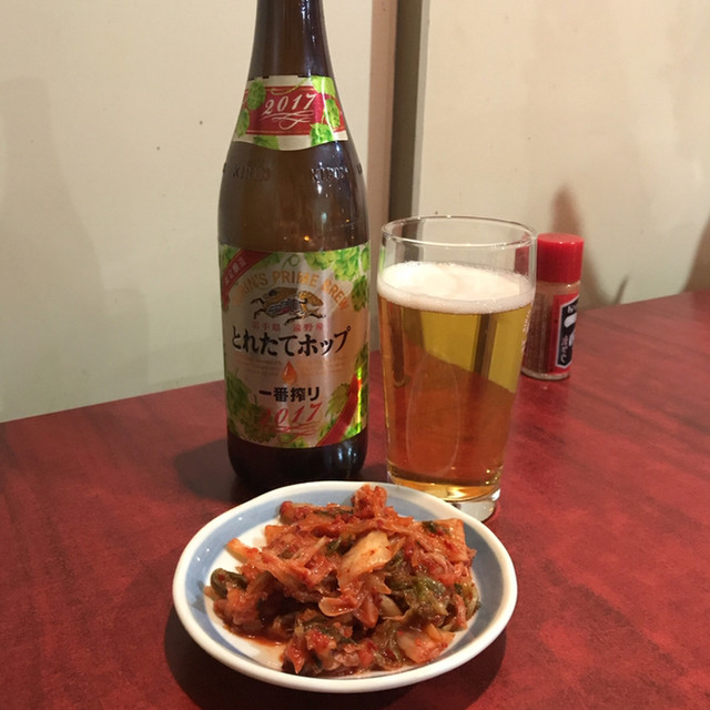 早い時間の入店でしたので、まだお客様んもまばら、キンキンに焼けた炭を準備してもらい、まずは瓶ビール!