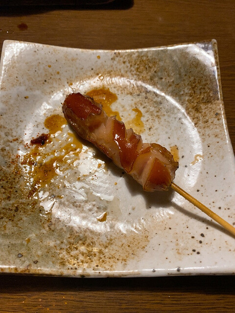 レバー・ささみ・皮・ハツ・白ネギ・ボンジリ・しそ巻き・砂ズリ・ウインナー・牛さがり・ぎんなん・そして名物的な「豚バラ」を変えありダネで!