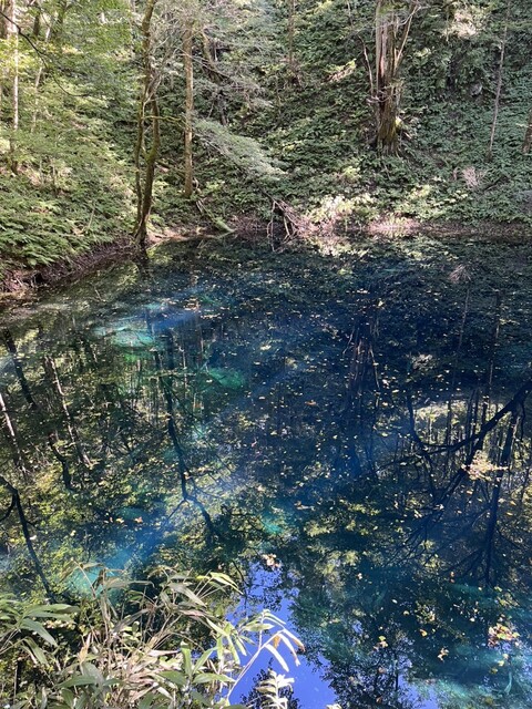 青池まで0.5キロ歩いて自然を感じて遠かったけどきて良かったなぁと思いながら青池へ