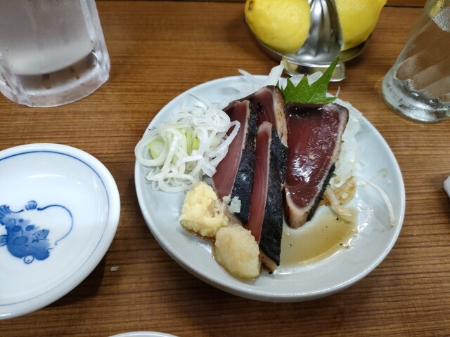 まずはカツオのたたき、ナスの煮びたしを注文しました。