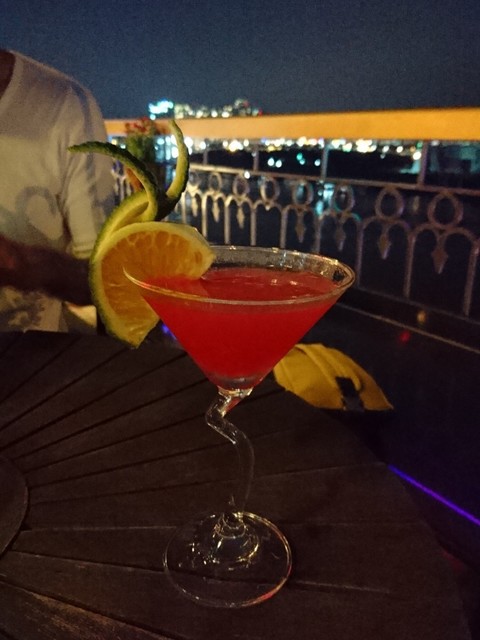 ムンムンした夜風を浴びながらサイゴン川を望むバーです。