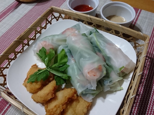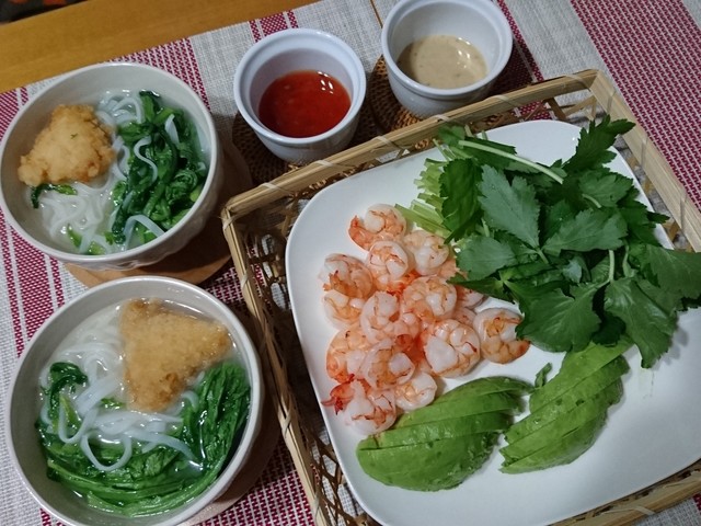 旅先で毎日食べてたフォー、生春巻きも作りました。