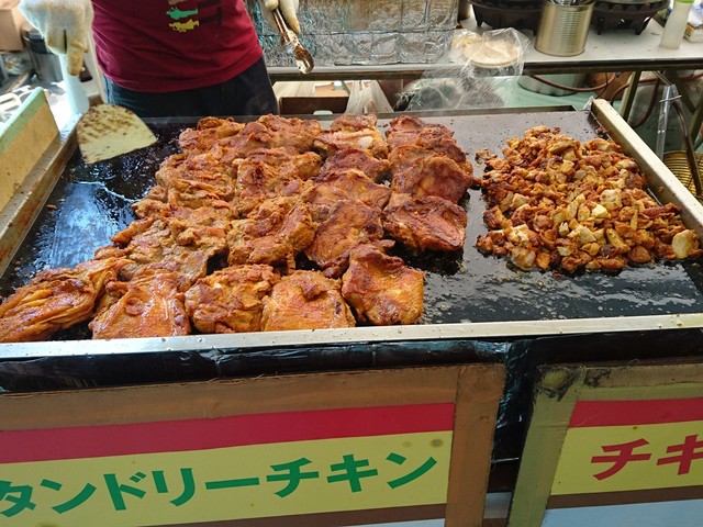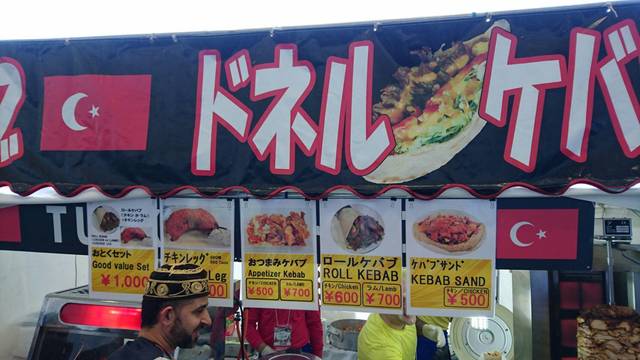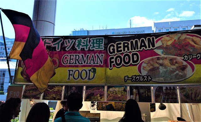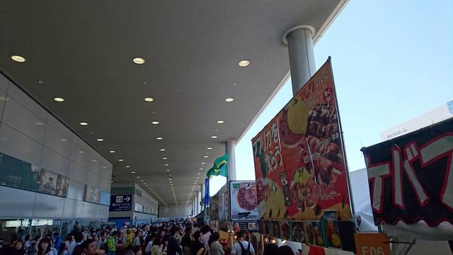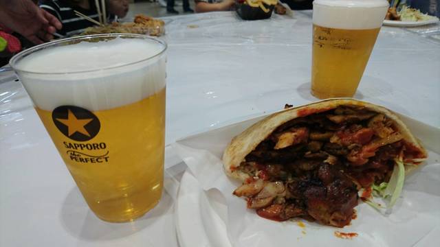 食べる場所はイベント会場の端の方に立食のテーブルがありますよ。