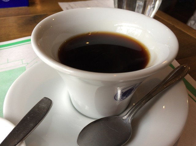 カフェはドリップのホットコーヒーを。柔らかい酸味の感じられる、雑味のないスッキリしたいいお味でした。