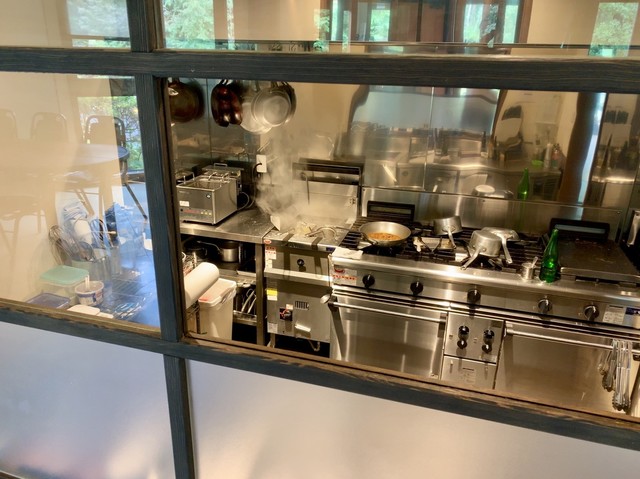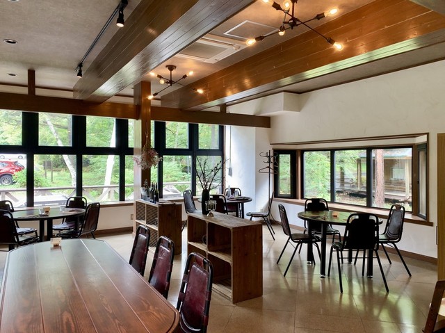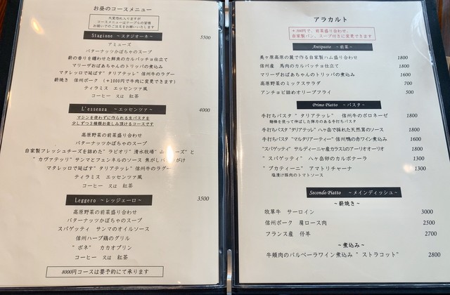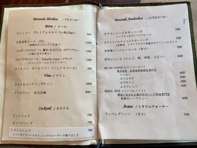 数年前、勝沼の名門ワイナリー「勝沼醸造」で試飲した際、常務の有賀さんから「八ヶ岳だったら、麓の茅野(ちの)にいい店がある、『から木』という和食の店でウチのワインも置いてもらっているから、ぜひ訪ねるように」と教えていただいた。実はいまだにその「から木」さんを訪問できずにいる私だが、その「から木」さんと浅からぬ関係にもあるというこちらのイタリアン、私の家からそう遠くない高原の別荘地内にオープンしたとの情報があり、急遽訪ねてみた。立地は森に囲まれた三井の森別荘地の商店街の一角。以前はcafé然としたカジュアルイタリアンだったところを改装した様子で、エクステリア・インテリア共に結構洒落た雰囲気だ。聞くとすでにオープンして一年経っている様子。
