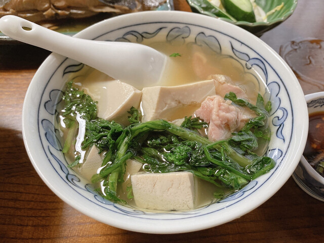 赤出汁のなめこと豆腐、三つ葉の味噌汁も良き!