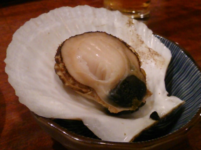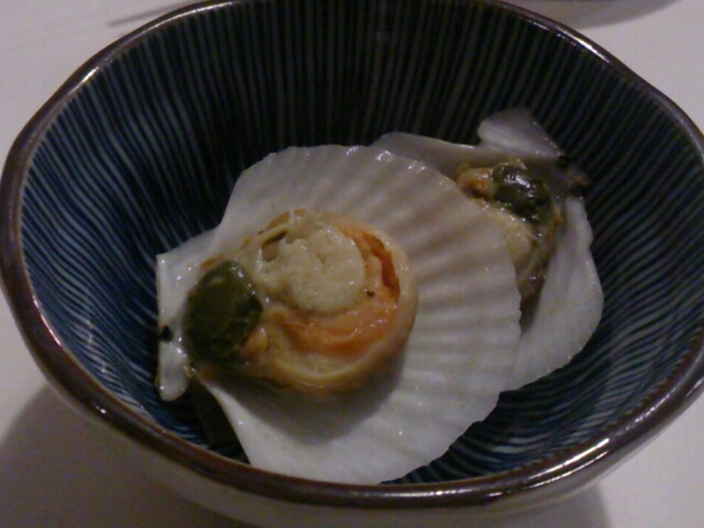 お通し(器からはみ出るホタテ)