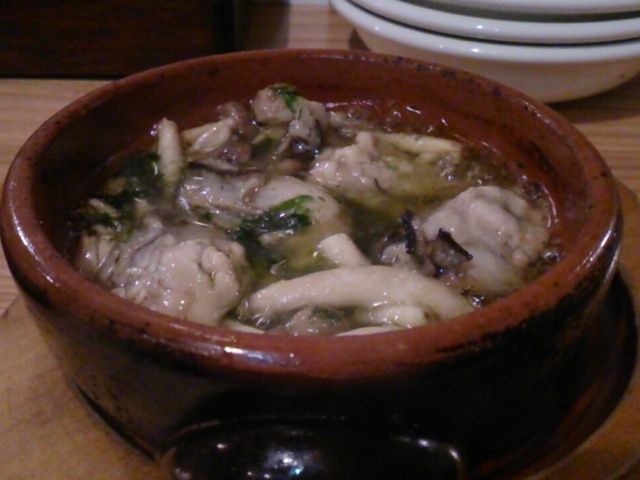 ニンニク(スペイン語でajo)が入っていて、ニンニク風味がアヒージョという意味らしいですが、ジンジャーアヒージョはニンニク抜きで、代わりにジンジャーを使ってます。