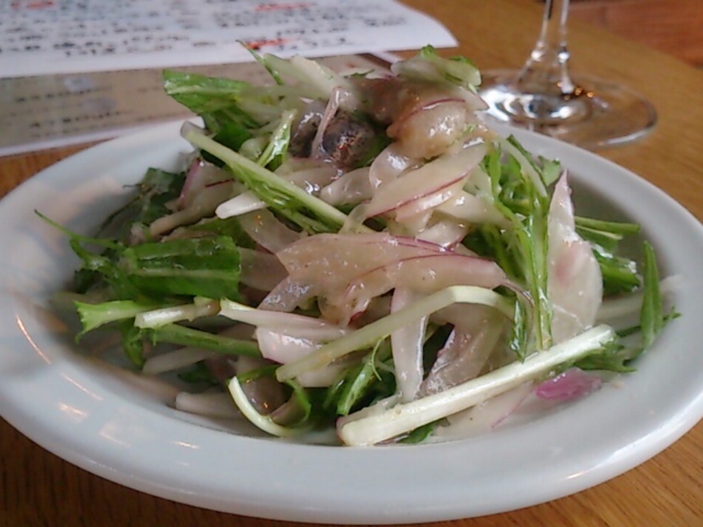 真イワシと水菜の梅マリネ