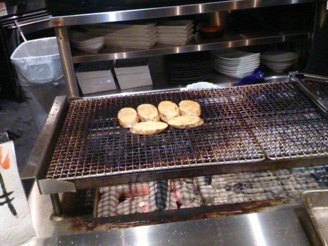 炭火で山芋を焼いてます