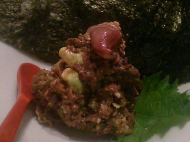 クリームチーズと鮪の酒盗は、酒のつまみにぴったり。