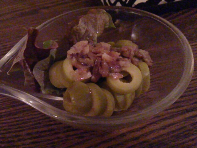 スパークリングワインと、オリーブマリネ、パテ・ド・カンパーニュをオーダーしました。
