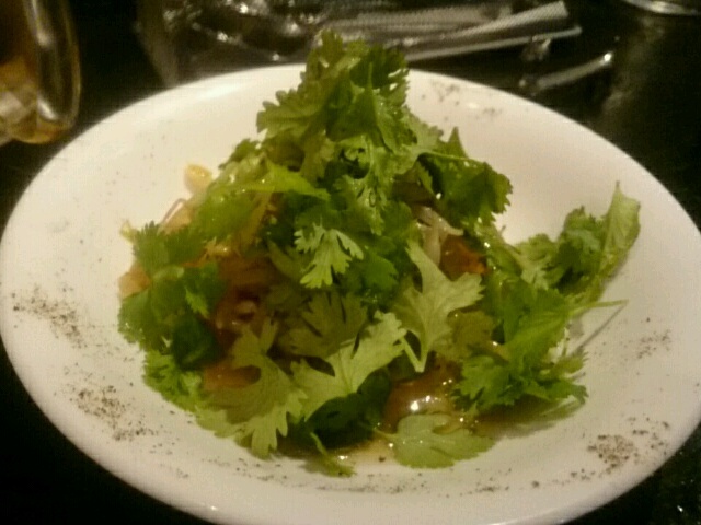 パクチーサラダ。クレソンも入っており、さっぱりとしていました。