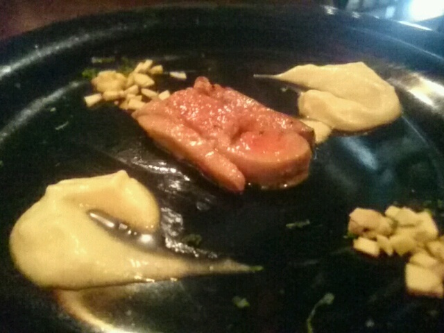 鹿肉は臭みはなく、フォアグラとトリュフの香りがなんとも美味し。