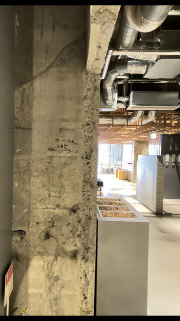 柱ははつったまま(はつり)施工中断してて、それも面白い。