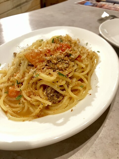 酔っててパン粉の存在に気付かず、写真にはちゃんと写ってるアンチョビパン粉、これが美味しかったんだな!食べ終わりたくないパスタでした^^