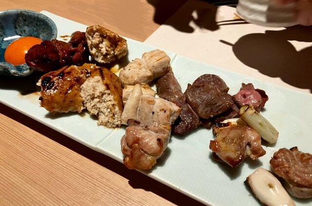 レバーとつくねに生卵をつけて衝撃の旨さ