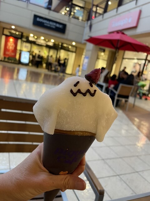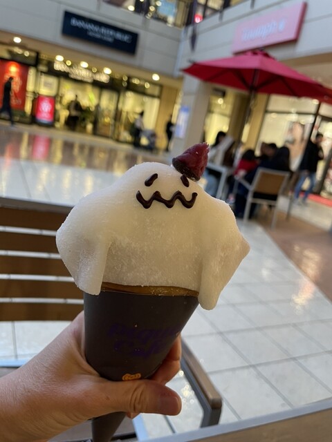 ハロウィンメニューのおばけのクレープが気になり注文したところ、なんとトッピングは雪見だいふくのようなぎゅうひ!