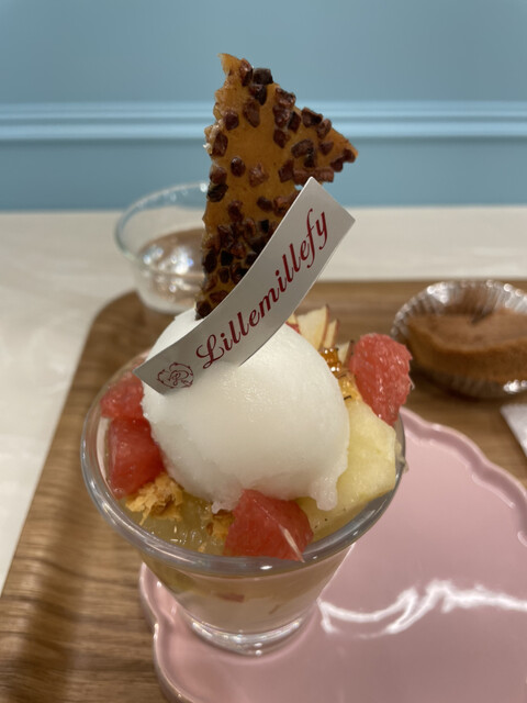 最近は桃のデザートが旬のようでどこのお店も桃ブーム!ということで、リトミルフィーさんの桃とライチのパフェをいただいてきました。