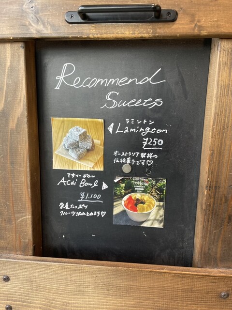 アサイーヨーグルトが半解凍でジェラートみたいでおいしかったです。酸味があるので、夏の暑い日にピッタリ。お昼ごはん代わりにしてしまいました。個人的にはラミントンケーキも好きなので(オーストラリアでハマりました。)ぜひ、また訪れたいです。