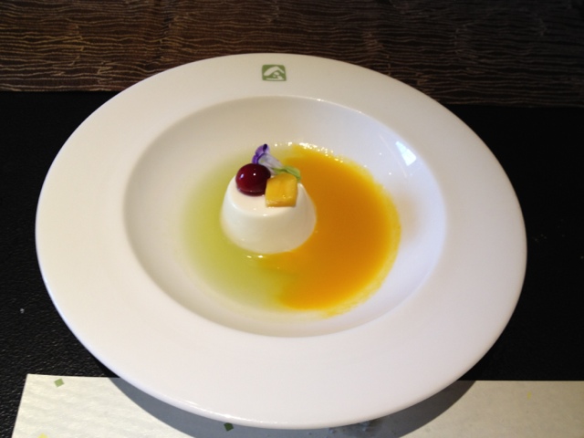 メロンとマンゴソースがけのプリン(?)