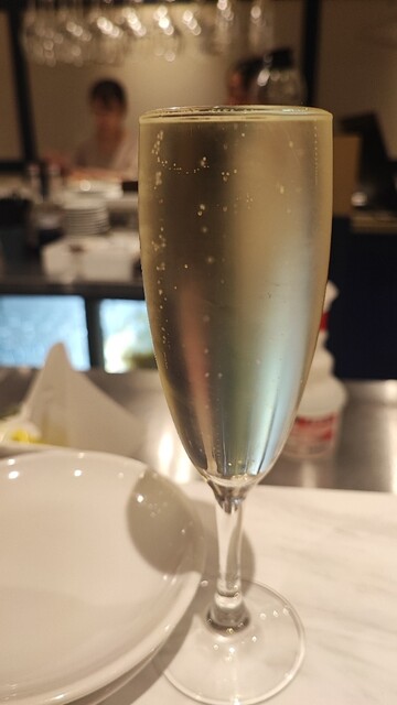京都駅で軽く昼呑みと思い、この店のトリュフの香りが脳裏をよぎる…。和牛のカルパッチョ、リゾット食べたい…。できるだけ新しいお店探すの好きですが、再来店!!昼から呑むスパーリングワインと一工夫された、創作フレンチの相性はバツグンに美味しい!!
