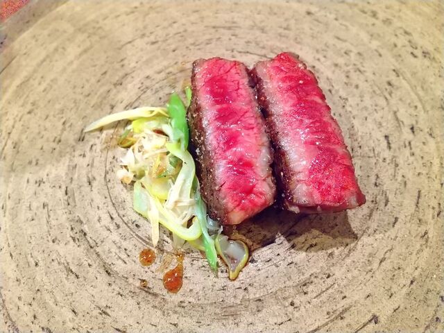 ★神戸牛のブレザオラ、トリュフ風味の裏漉ししたシルクスイート、卵黄ソース