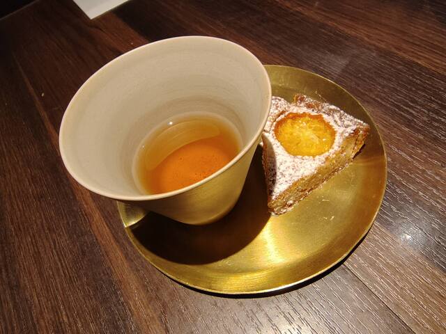 ★根セロリのババロア、コンビーフサンド、桜海老のグジェール、ピスタチオと干し柿、トンプリとアコヤ貝貝柱