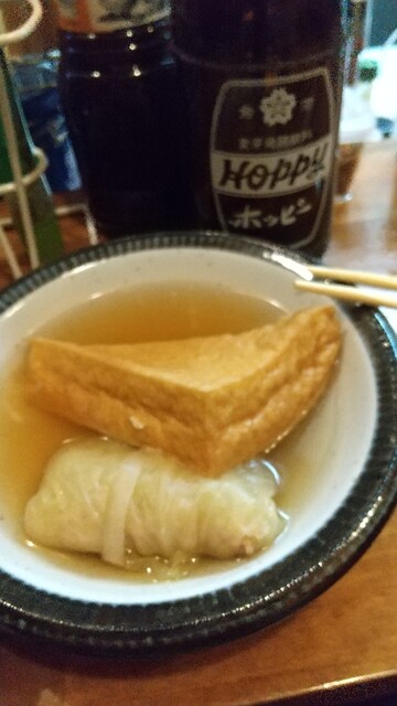 追加でホッピー中身と大好きな個別のおでんのロールキャベツに厚揚げを注文しました。