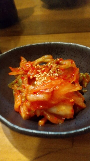 追加のごちゃまぜナムルはニンニク、小松菜などいろいろ入っていてぼりゅーむもあり、はまっちゃいました。