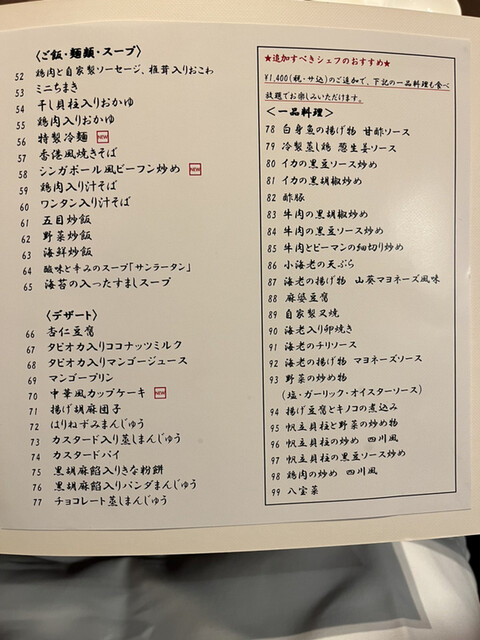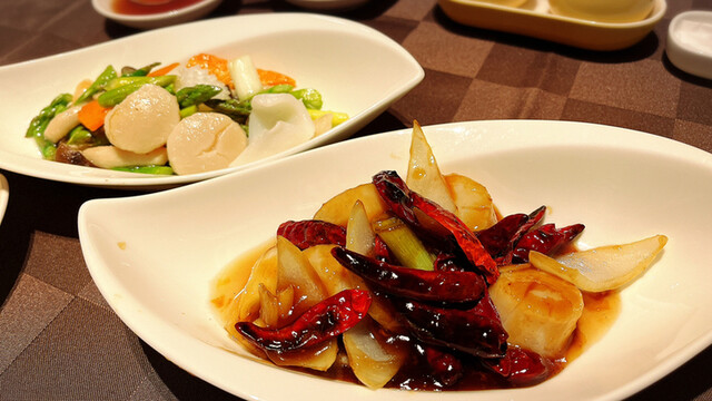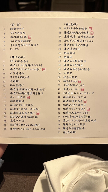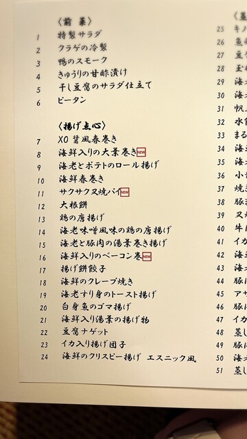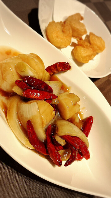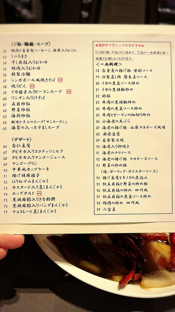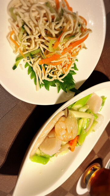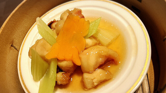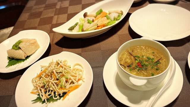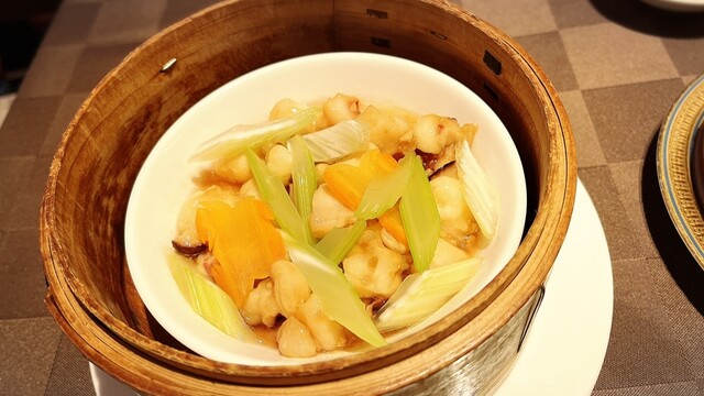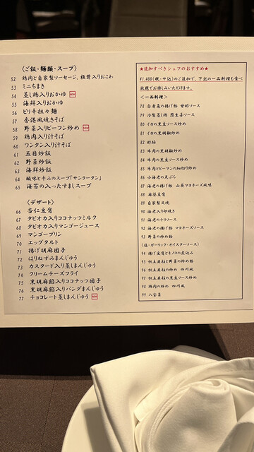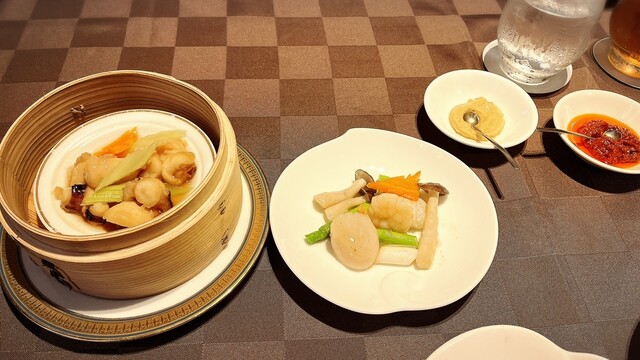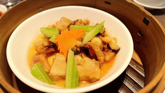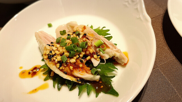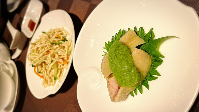 私は新メニューの四川風蒸し鶏、とてもお気に入りに。海鮮メニューは相変わらずの素晴らしさ。