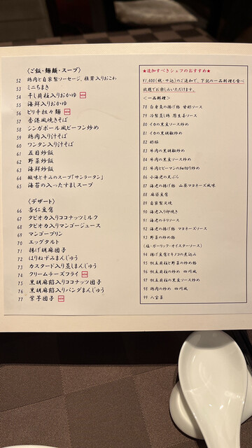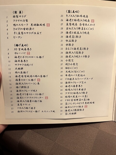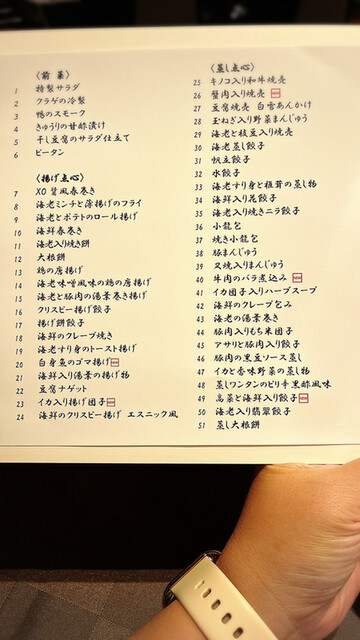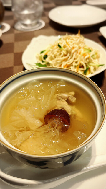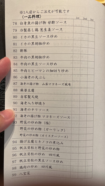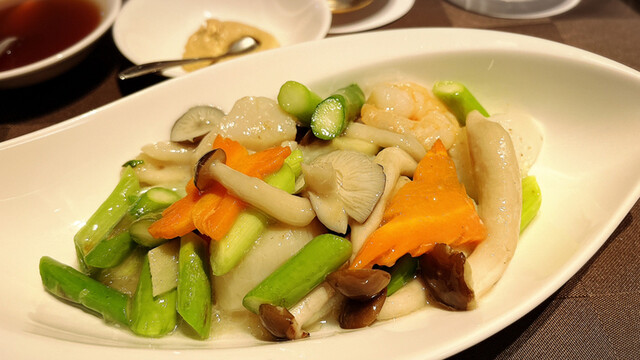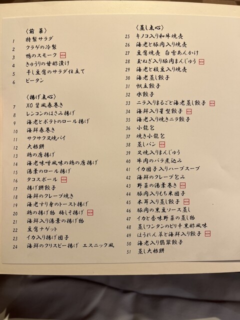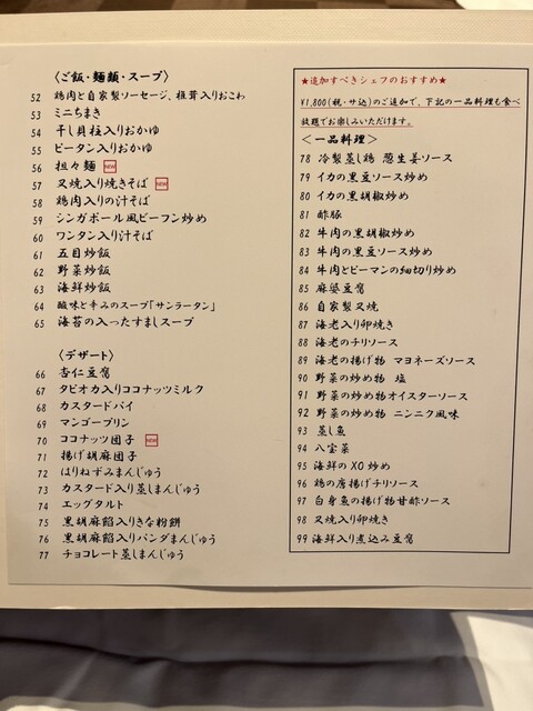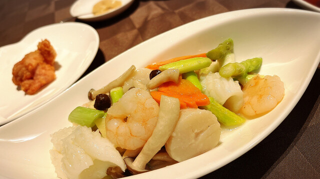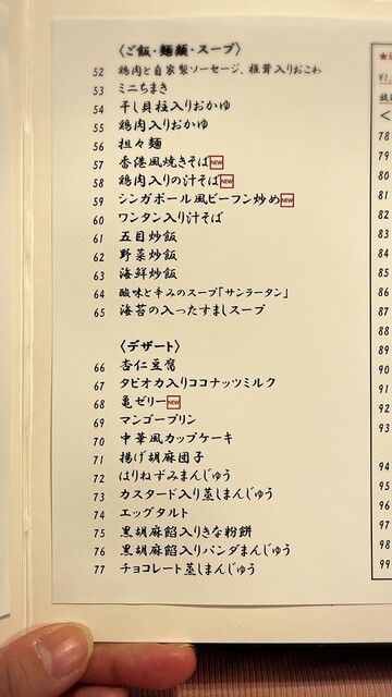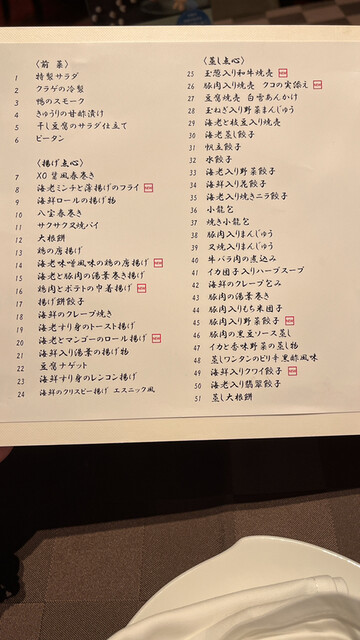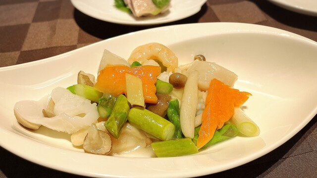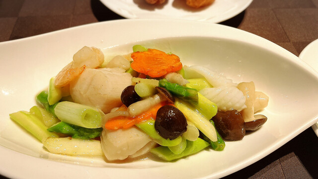 私は新メニューの四川風蒸し鶏、とてもお気に入りに。海鮮メニューは相変わらずの素晴らしさ。