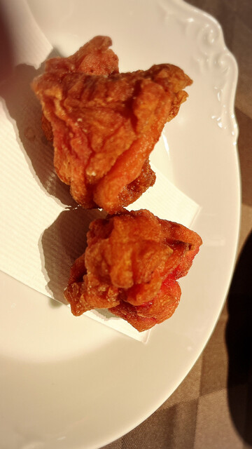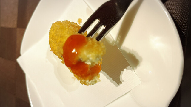 食感はフワフワしていて、サックリ。甘酢ソースをつけると味変して、また楽しめました。