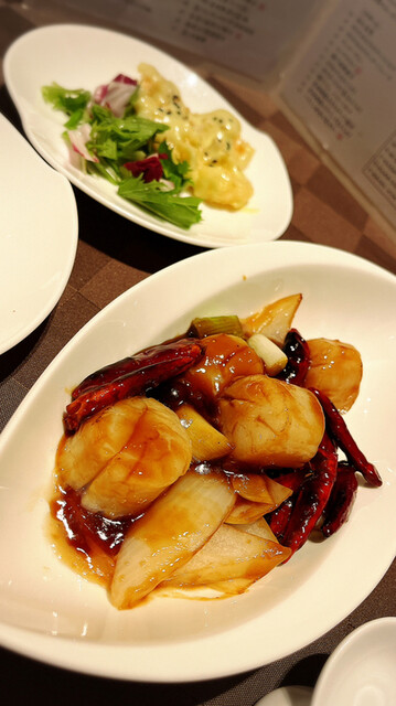 いつもお世話になっているのですが、今日は1000円プラスして、麻婆豆腐や帆立の四川炒め、八宝菜、エビチリ、イカの黒豆ソース炒めなどもいただきました。