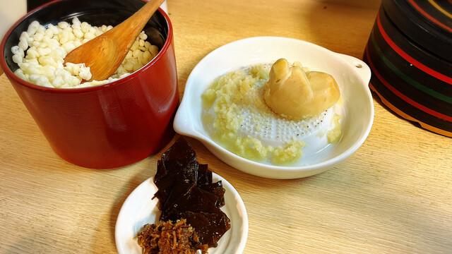 饂飩屋さんのかやくごはんが好きなので、それもください。300円。