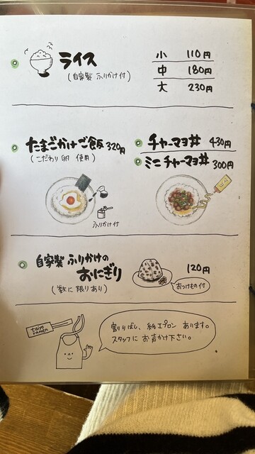 メニューがめっちゃ可愛い!店主の奥様の直筆みたいです。センスに脱帽。