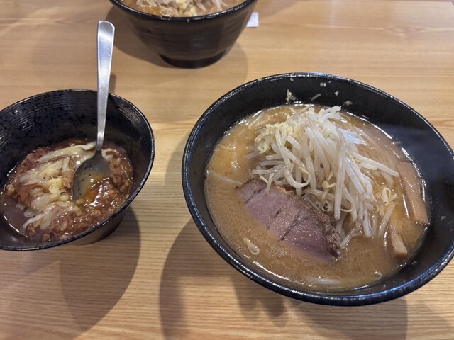 ここのパンチのある味噌に炒めてシャキシャキのもやしが絶品で通ってます、本日のセットは半チャーハン、これもバリカタのご飯で食べ応えがありとても美味しい