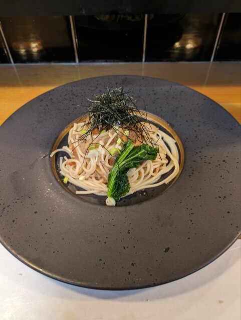 平目の昆布締めとカラスミの冷製パスタやて