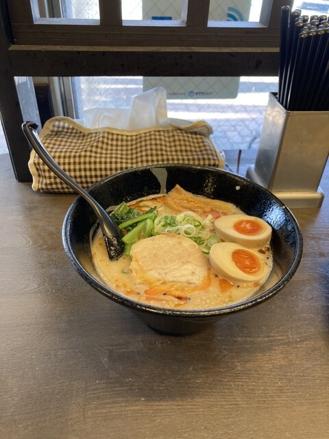 赤とんこつラーメン 煮玉子のせ