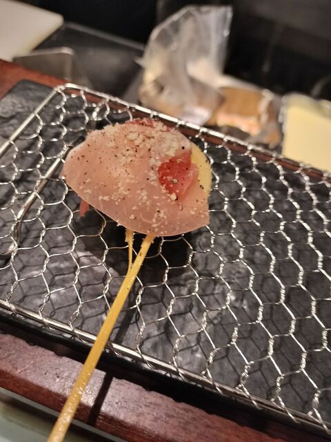 3串目は、モッツァレラチーズの豚肉ロールの串。