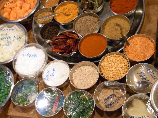 お店に入ると、スパイスやカットされた野菜が並んでいた。
