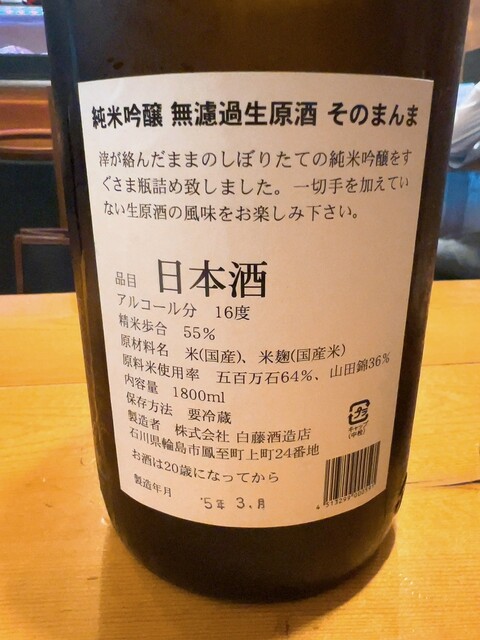 ⚪︎石川 奥能登の白菊 純米吟醸 そのまんま