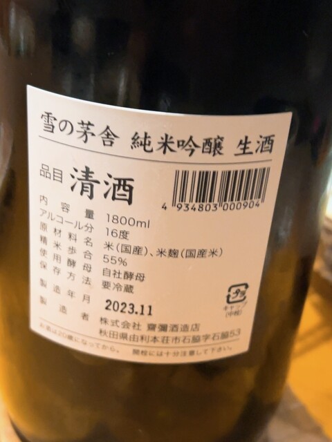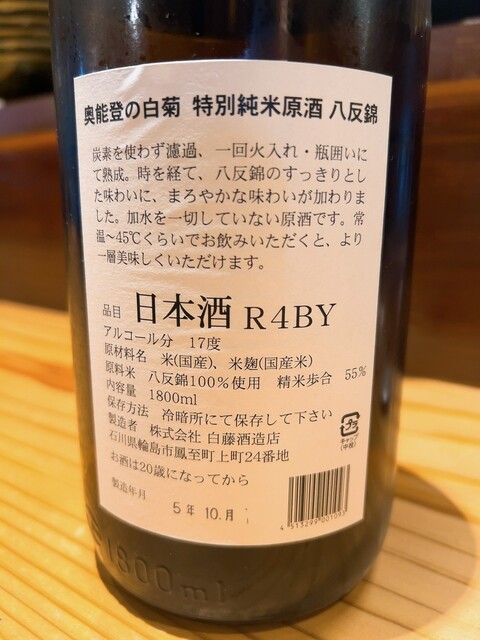 ⚪︎石川 奥能登の白菊 純米原酒 八反錦 瓶囲熟成 緩燗