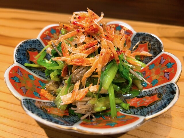 ・名取 仙台芹と根っこのお浸し桜海老パラパラ