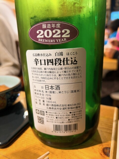 ⚪︎広島 白鴻 四段仕込純米酒赤ラベル 熱燗