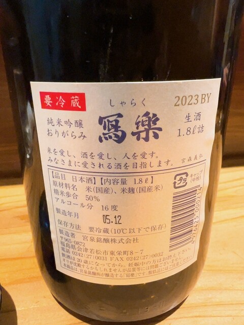 ⚪︎福島 冩楽 純米吟醸 剣愛山
