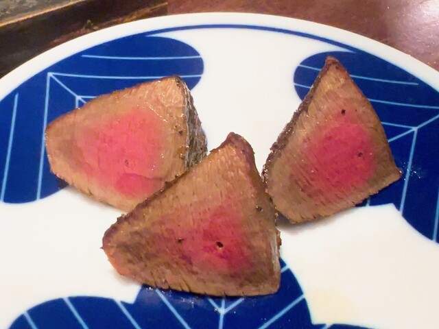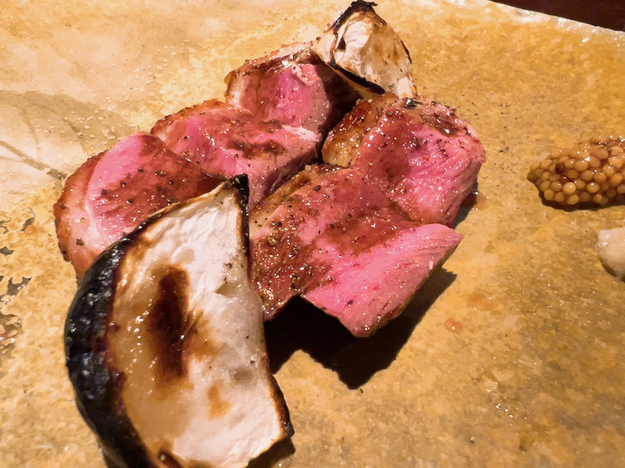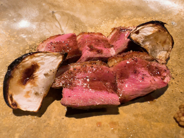 備長炭の強火を見事にコントロールされていて、芯のレア感を残しつつ、表面はふっくら、皮付きはパリパリぱんぱん、おこげは香りをつける絶妙加減、天才的塩振り塩梅は甘みが感じられるアレンジ、見た目にも美しい照り、堪りません!