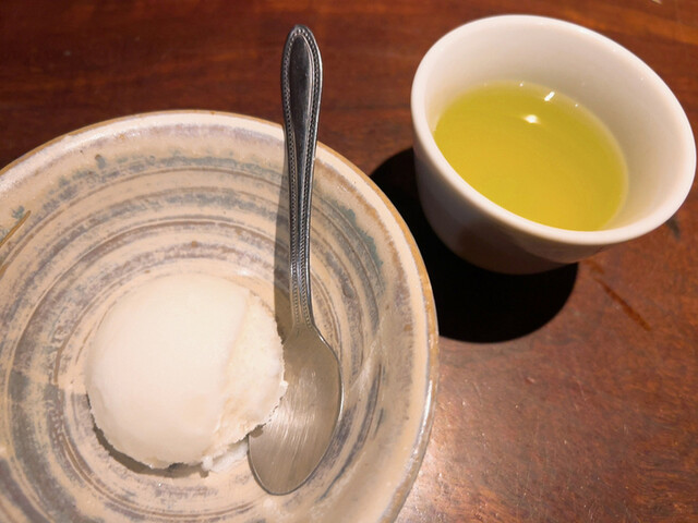 〆の自家製アイスと緑茶でクールダウン