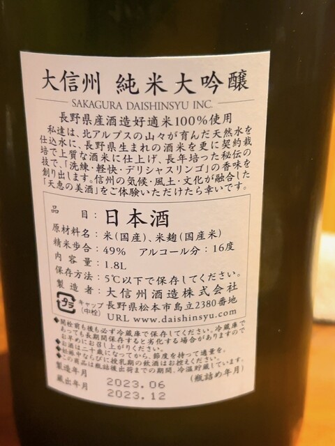 ⚪︎長野 大信州 酒狂會限定 天恵の美酒