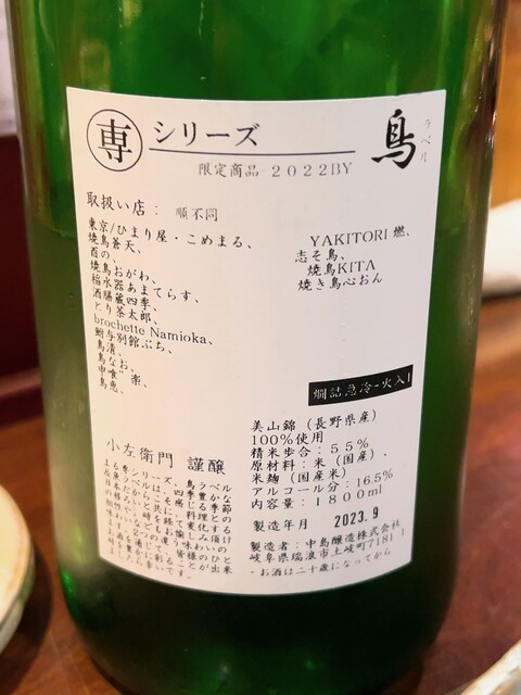 ⚪︎岐阜 小左衛門 美山錦鳥ラベル 酒狂會限定